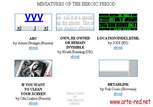 La creatividad de los artistas del Este parece no conocer límites. Vuk Cosic empieza sus experiencias artísticas con los carácteres ASCII, poniendo en línea, otros dos capítulos de su peculiar «Historia del Arte»: History of Art for the Blind y ASCII History of Moving Images.