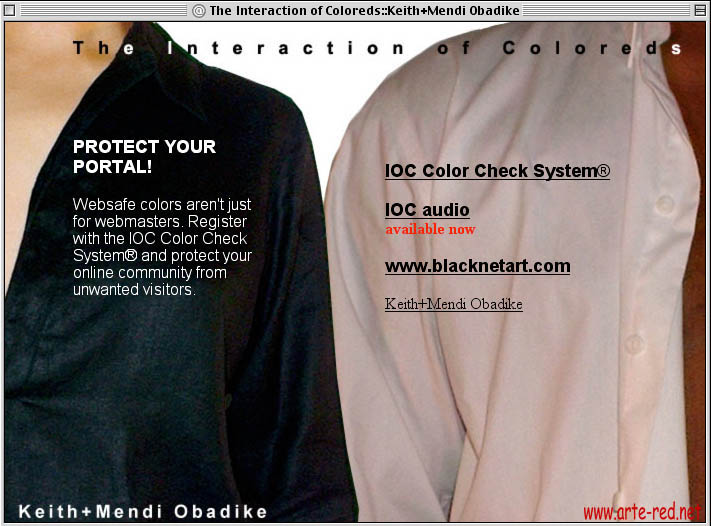 2002 Keith+Mendi Obadike – The Interaction of Coloreds Published 10 marzo, 2016 at 711 × 526 in 2002 ← Anterior