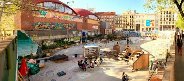 Situado en pleno centro de Madrid, en la plaza de La Latina, El Campo de Cebada surgió precisamente de un problema: la demolición del polideportivo para acoger un mercado, que nunca se llegó a construir. “El Campo de Cebada nace de la voluntad de habitar los conflictos para resolverlos desde dentro. Cada día ponemos en práctica una forma de hacer ciudad desde abajo con sistema de participación sencillo, abierto y transparente, que involucra y beneficia muchísimas personas” nos ha explicado recientemente Pascual que es también uno de los vecinos del barrio madrileño de La Latina que en 2010 pusieron en marcha el proyecto que se ha convertido en una infraestructura sostenible que incluye huertos y jardines, herramientas comunes tanto para construir un banco como para proyectar una película, un anfiteatro con gradas y un campo de deportes con portería y canastas. Todas las actividades se desarrollan al aire libre, pero acaban de poner en marcha una campaña de crowdfunding (financiación colectiva) para construir una cúpula geodésica donde resguardarse durante el invierno.