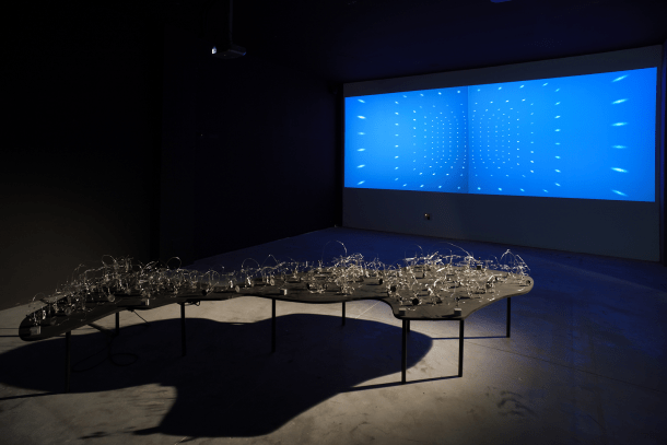 La Colección BEEP está representada por 4 obras: una de las piezas más emblemáticas del fondo Luci, sin nombre y sin memoria del catalán José Manuel Berenguer y las tres adquisiciones más recientes: Aurelia 1 +Hz / proto viva generator de la artista eslovena Robertina Šebjanič, The Wall of Gazes de los argentinos Mariano Sardón y Mariano Sigman, ganadora del Premio ARCO-BEEP de Arte Electrónico 2019 y Eclipse II de la griega Félicie d’Estienne d’Orves.