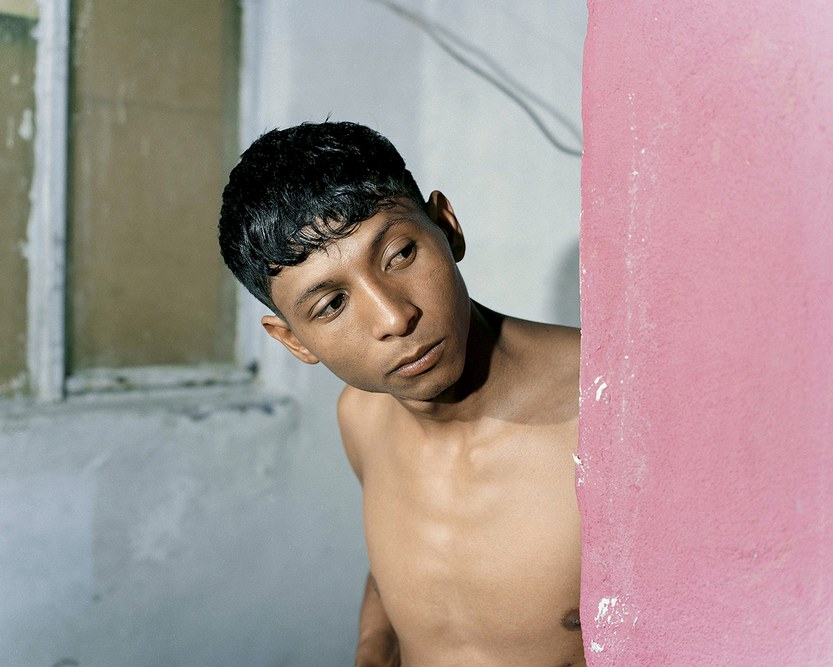 Felipe Romero. Amigo de El Friki y pared rosa, 2021-2024. Impresión Lambda. 120 x 150 cm (47 x 59 pulgadas). Cortesía: © Felipe Romero Beltrán.